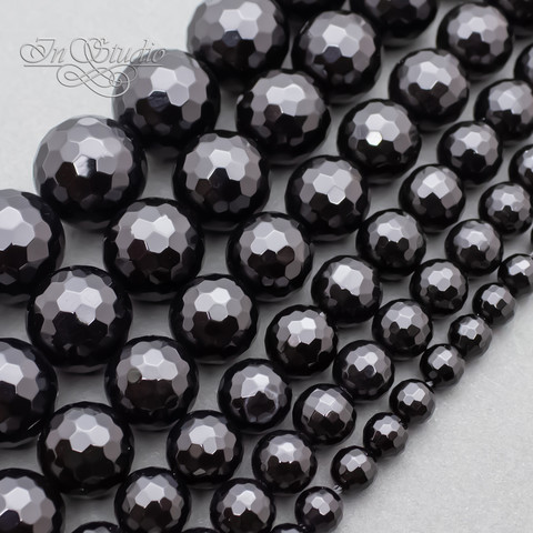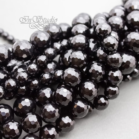 Агат черный огранка 6 8 10 12 14 16 мм бусины шарики