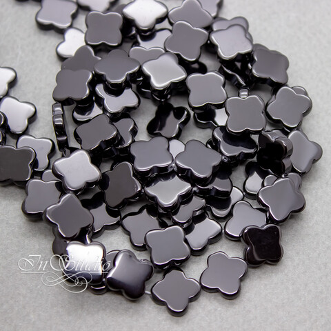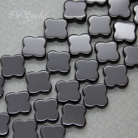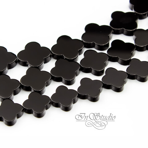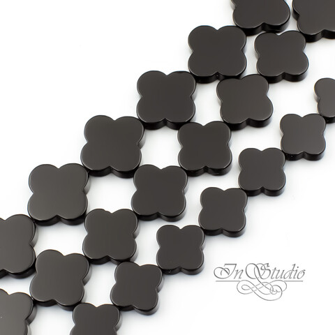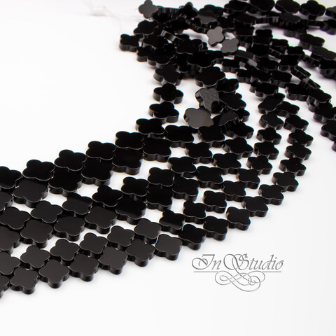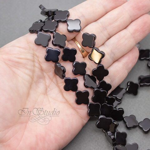 Бусины формы КЛЕВЕР, ромб, цветок из натурального чёрного агата.