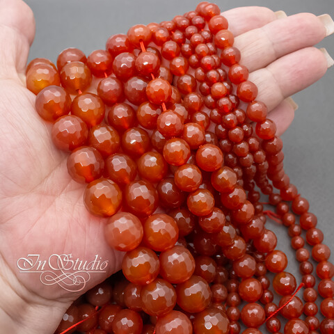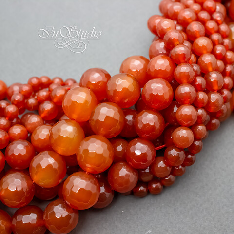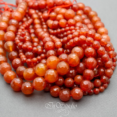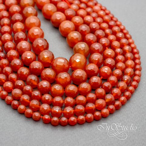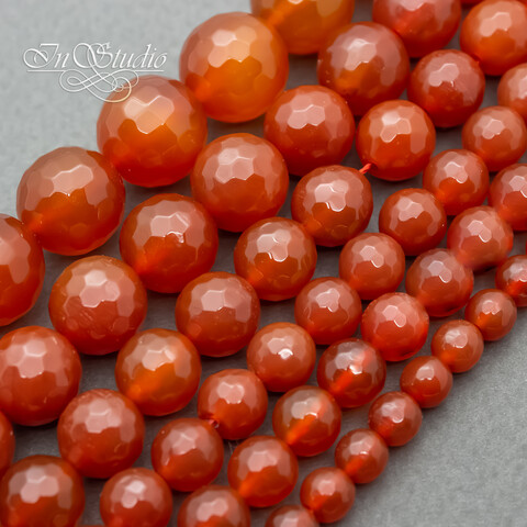 Бусины из натурального сердолика терракотового, темно оранжевого цвета с огранкой.