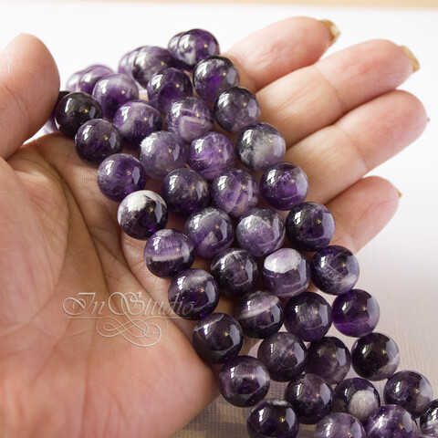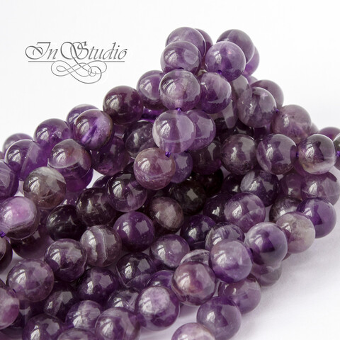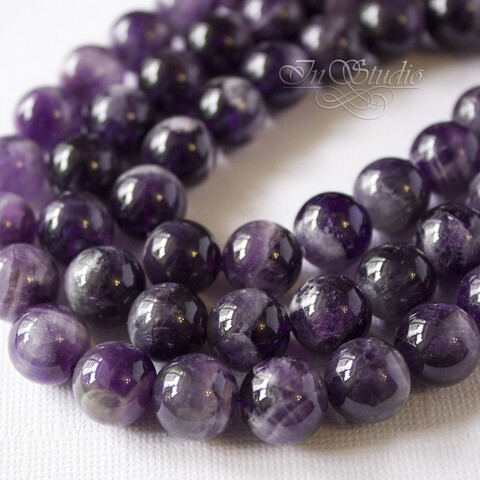 Красивые бусины натурального аметиста темно фиолетового цвета в виде гладкого полированного шара.