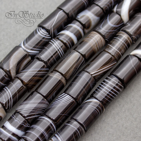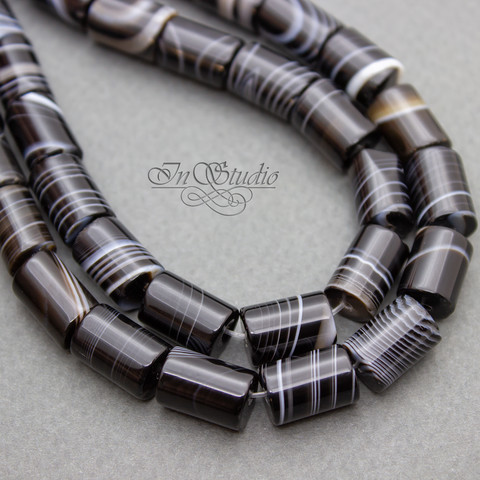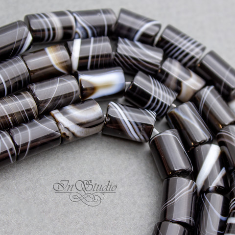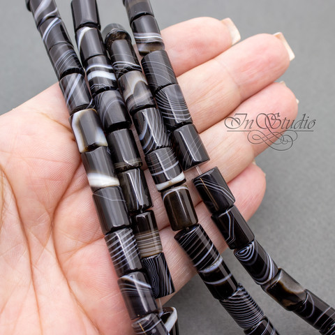 Бусины граненые цилиндры из натурального черного полосатого агата Ботсвана..