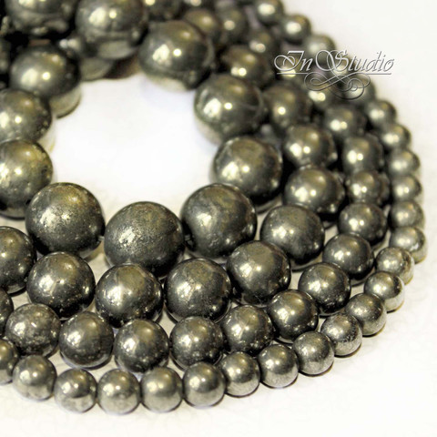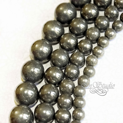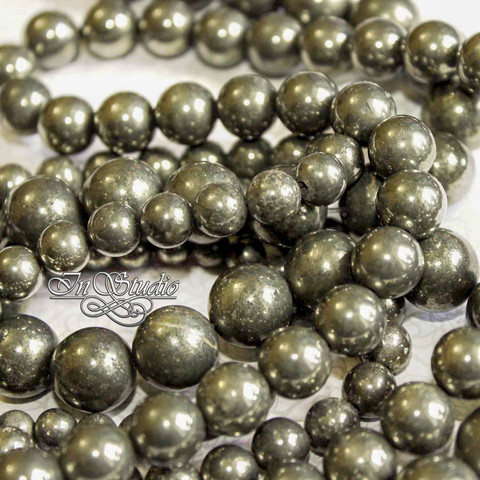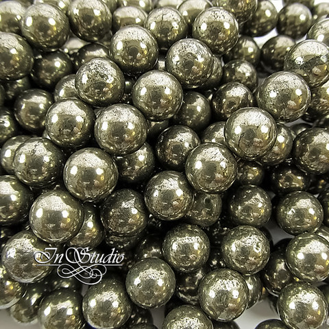 Бусины из натурального природного пирита. Пирит - это минерал светлого латунно-желтого и золотисто-бронзового цвета с сильным металлическим блеском.
