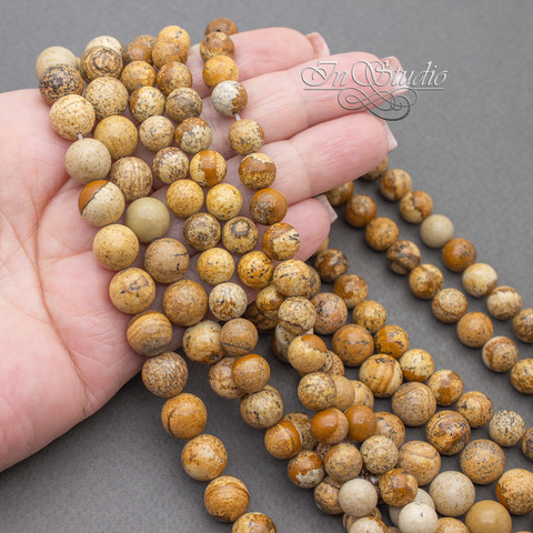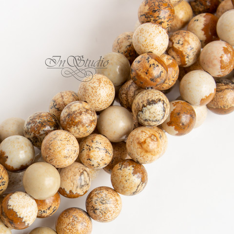 Яшма пейзажная 6 8 10 12 мм бежевые бусины шарики