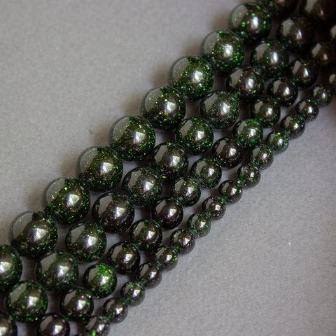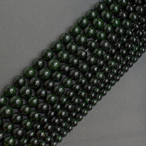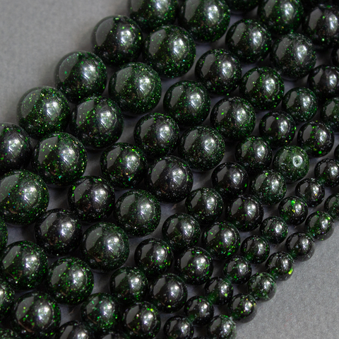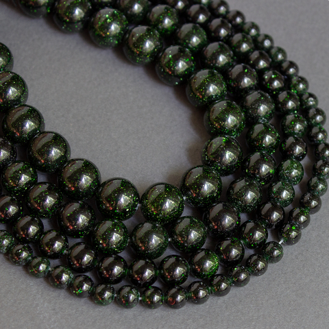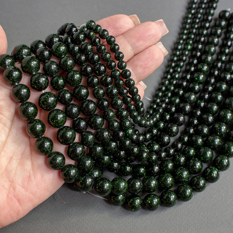 Бусины зеленого авантюрина Ночи Каира темно зеленого цвета с блеском. Очень хорошая иризация, равномерный цвет и блеск