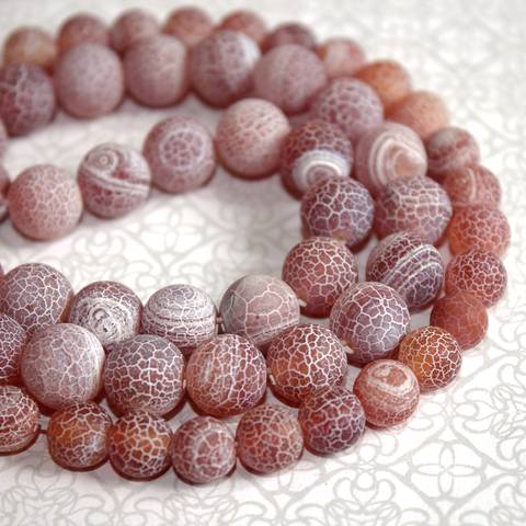 Бусины из натурального камня агата с эффектом кракле. Бусины имеют матовую, слегка шероховатую поверхность с ярко выраженными белыми прожилками. Цвет бусин спокойный, не яркий - от светло розового, ягодного цвета до насыщенного винного бордового оттенка.