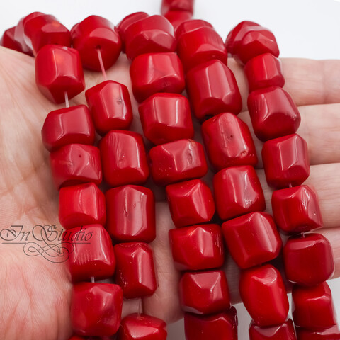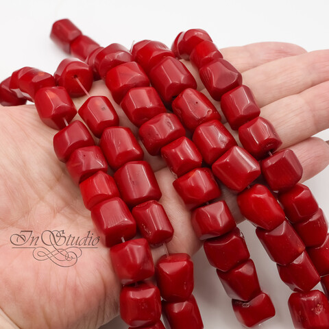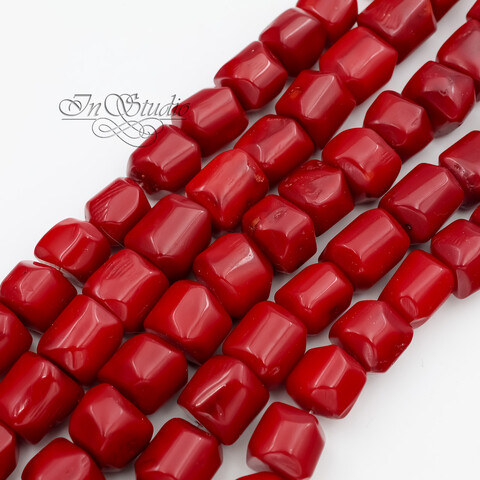 Коралл натуральный красный бусины 10-14 мм фриформ бочонки