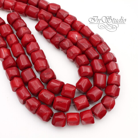 Натуральный коралл красного насыщенного цвета в бусины в виде цилиндров для изготовления бижутерии - бус, ожерелий, браслетов, колье и сережек..