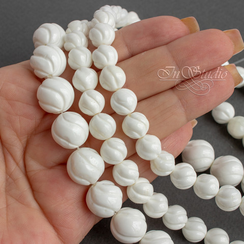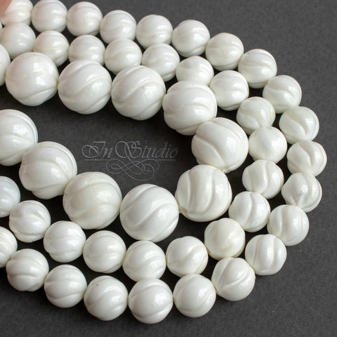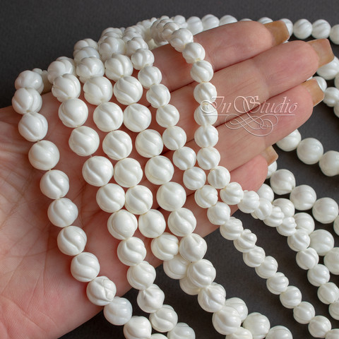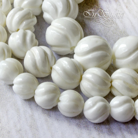 Коралл резной белый 8 12 мм бусины шарики