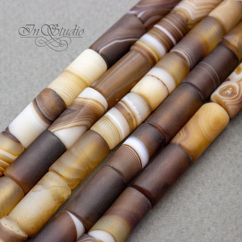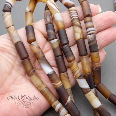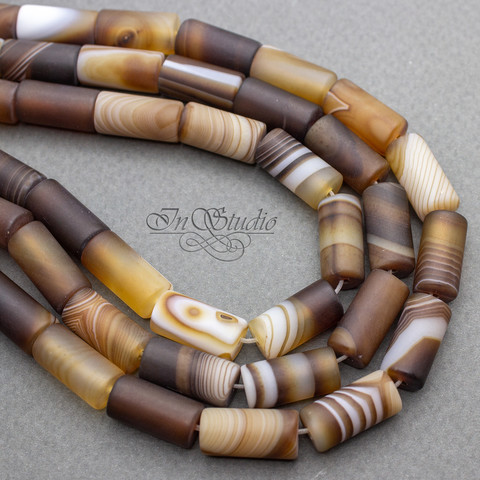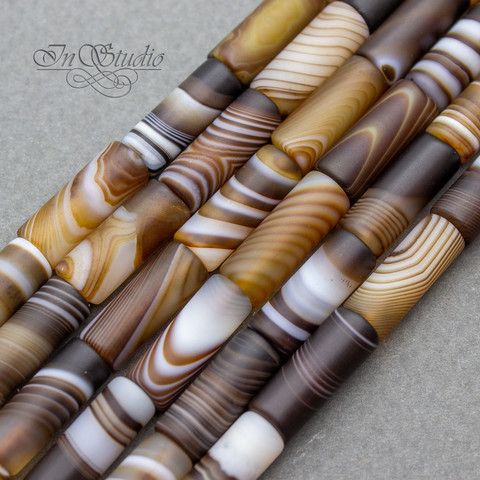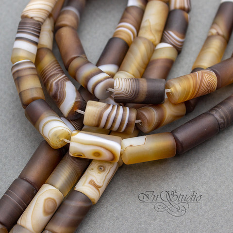 Агат коричневый 16х8 мм матовые бусины трубочки цилиндры