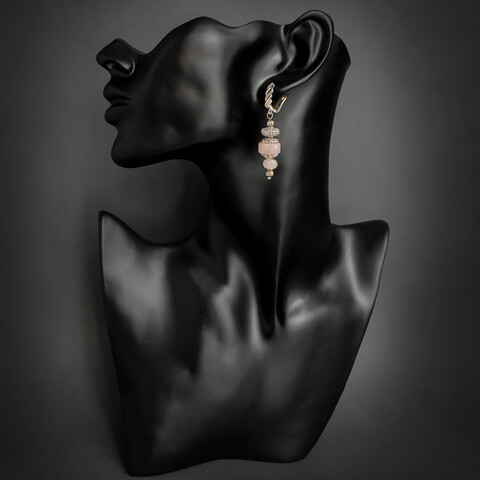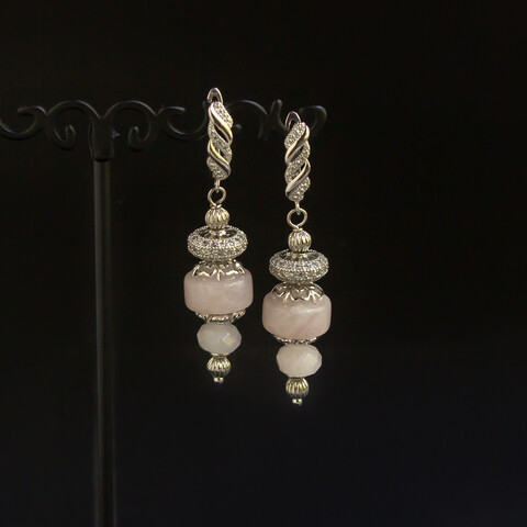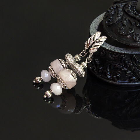 Фурнитура премиум класса с родиевым покрытием в сочетании с нежно розовым камнем - смотрится очень элегантно и стильно.