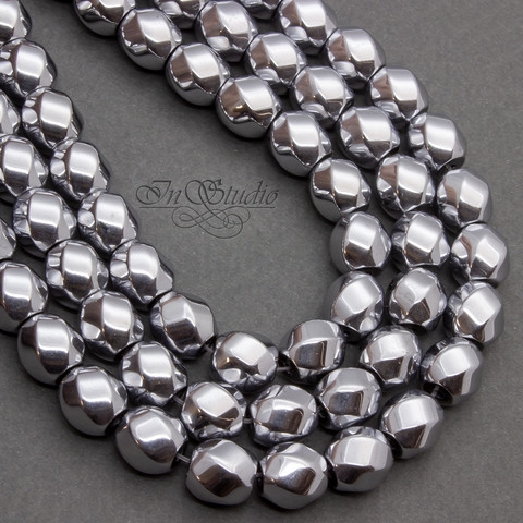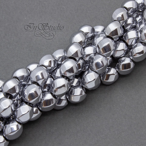 Бусины Гематита натурального с гальваническим покрытием цвет серебро. Форма - шар с гранями.