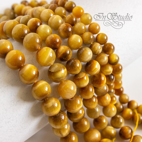 Бусины из натурального тигрового глаза светлого золотисто желтого цвета.