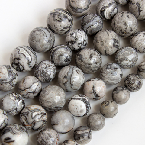Яшма серая картографическая 6 8 10 12 мм круглые бусины
