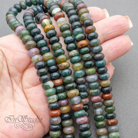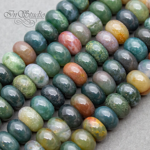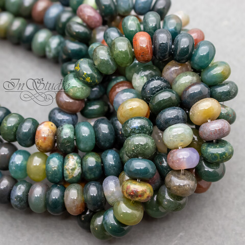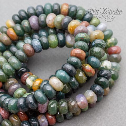 Агат индийский зеленый 8х5 мм бусины рондели разделители