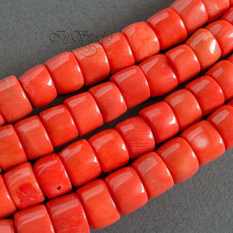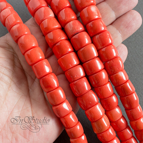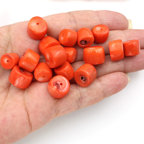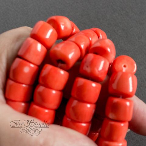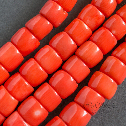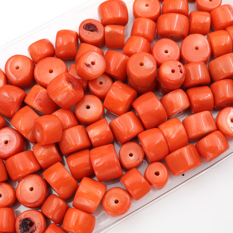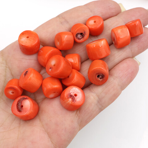 Крупные бусины натурального тонированного оранжевого коралла для изготовления украшений и бижутерии.