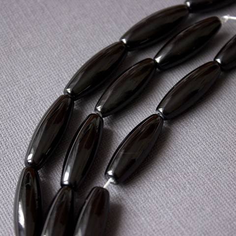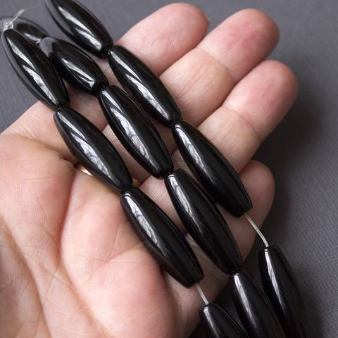 Крупные бусины из натурального черного агата длина 30 мм толщина 10 мм.