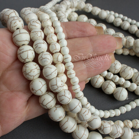 Турквенит говлит 6 8 12 мм бежевые круглые бусины