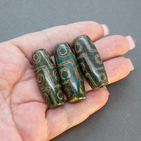 Крупные бусины Дзи размер 40х15 мм глянцевые. Цветовая гамма - от кофейно коричневого до изумрудно зеленого.