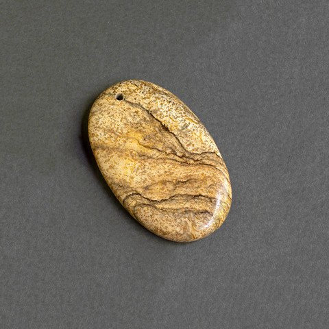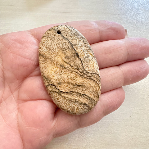 Крупный кулон из натуральной пейзажной яшмы песочного цвета с очень красивым рисунком тонких прожилок.