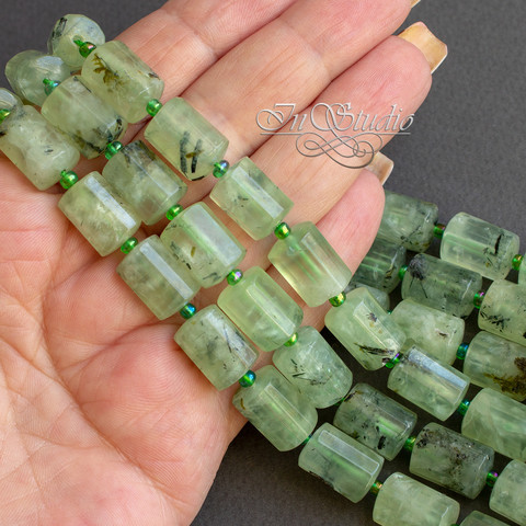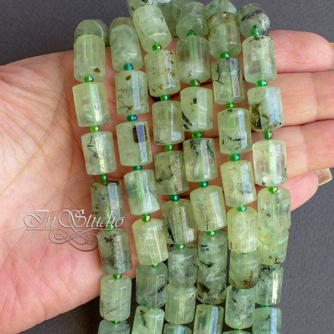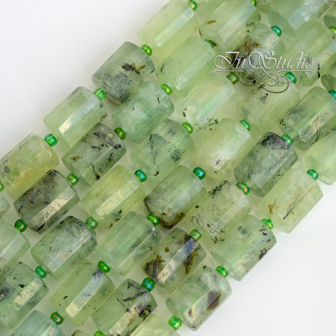 Пренит бусины цилиндр 14х10 мм зеленые трубочки с гранями