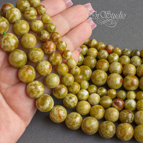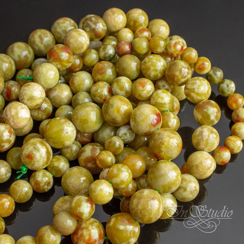 Камни бусины хризопала - цвет яблочный, оливково желтоватый с молочными и рыжими вкраплениями.