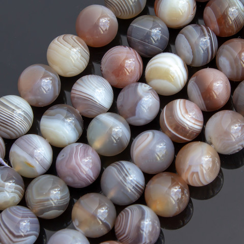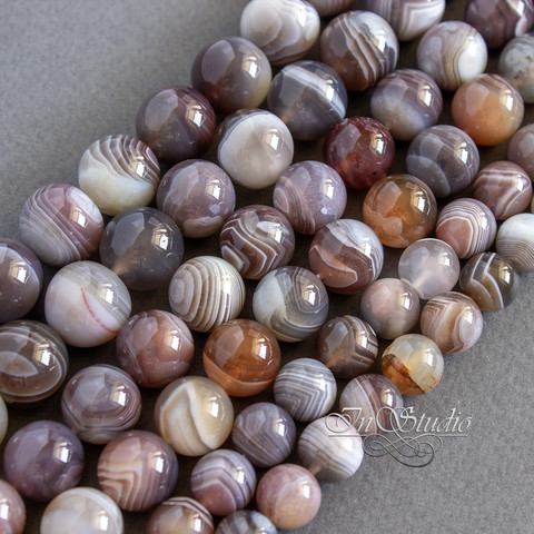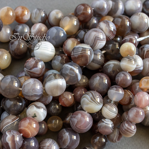 Бусины очень хорошего качества из натурального полосатого Ботсванского агата - серые с сиреневым и красноватым оттенком.
