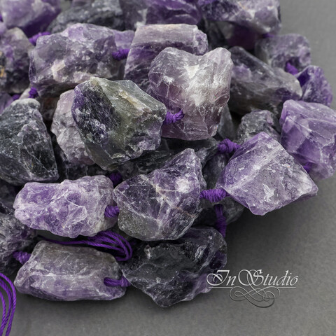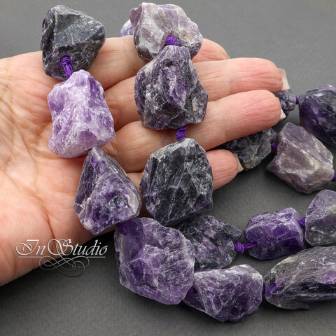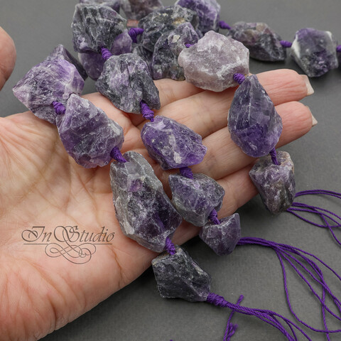 Крупные бусины из натурального необработанного аметиста. Бусины с крупным отверстием для тросика, лески, шнура.