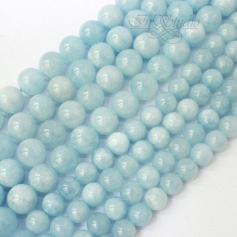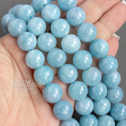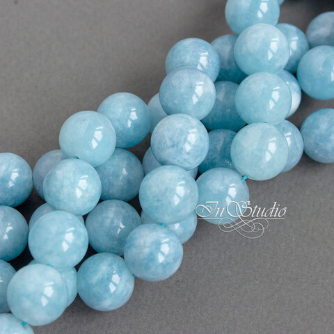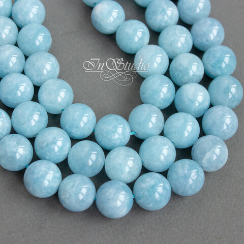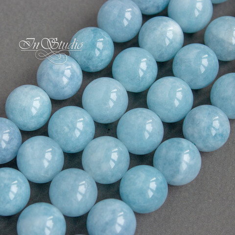 Бусины шарики из натурального тонированного аквамарина нежно голубого цвета.