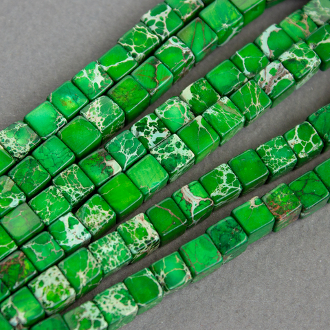 Красивые бусины кубики из натурального камня варисцит. Цвет варисцита тонированный для усиления цвета - изумрудно зеленый, цвет "зеленки". Форма куб, кубик. Блеск - восковой, поверхность гладкая, полуматовая. Каждая бусина имеет свой уникальный и неповторимый рисунок - узор.