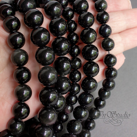 Обсидиан радужный - Бусины из натурального природного радужного обсидиана. Очень красивые бусины Радужный обсидиан - редко встречающийся обсидиан с иризацией в голубовато-сиреневых, зелёных или красноватых тонах