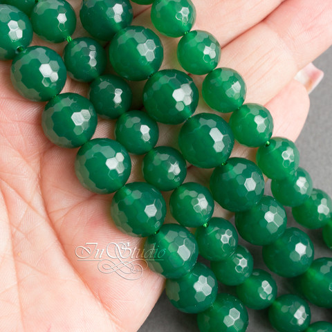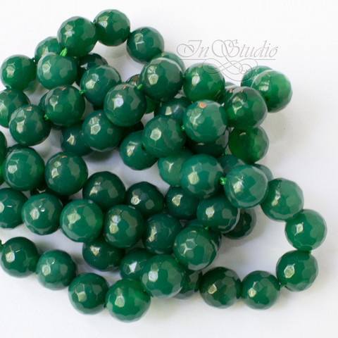 Хризопраз камень. Бусины с огранкой из хризопраза. Цвет камня насыщенно зеленый, изумрудный.