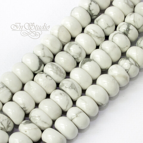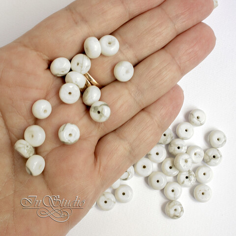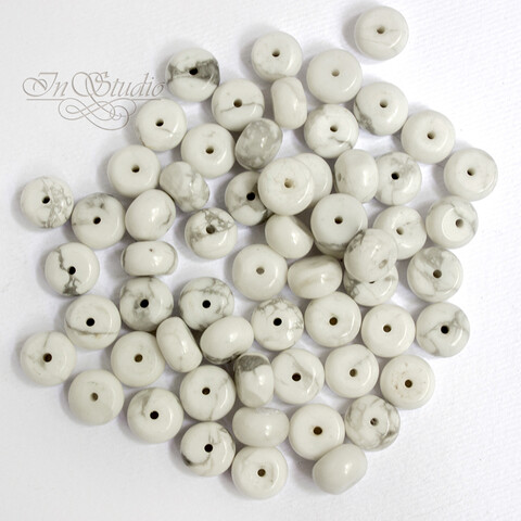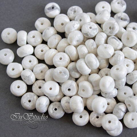 Кахолонг - бусины рондели боченки из натурального камня. Бусины белые с серыми мраморными прожилками, полу матовые с хорошей полировкой.