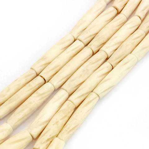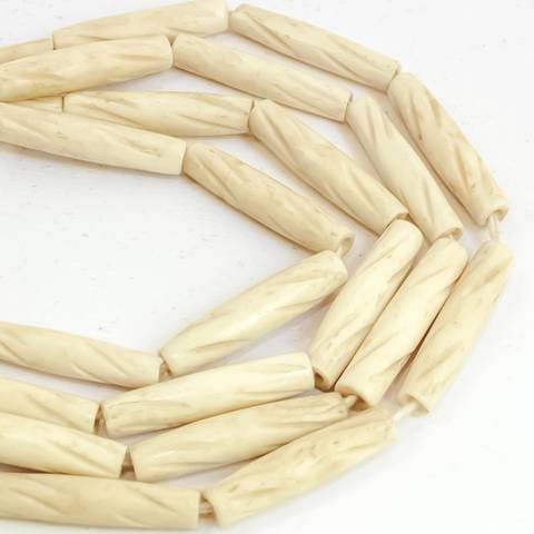 Бусины трубочки длинные резные из натуральной кости буйвола. Бусины отбеленные, цвет белый с молчно-бежевым оттенком - цвет слоновая кость.