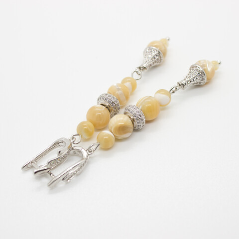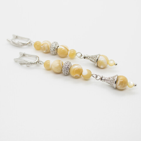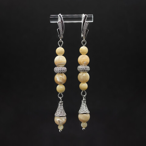 Серебристые длинные серьги с перламутром Эльвина