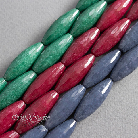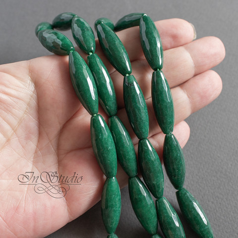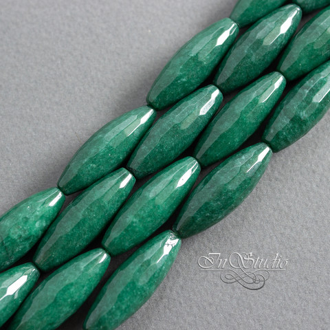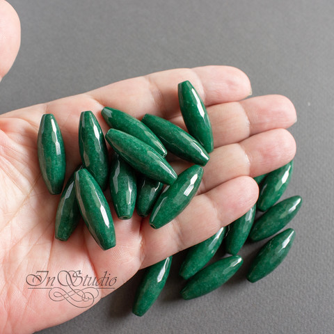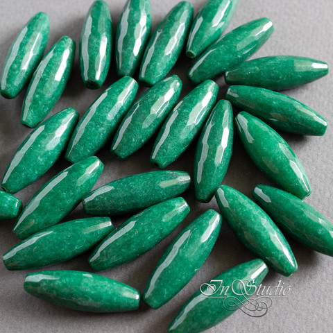 Бусины продолговатые оливки, веретено с огранкой из натурального камня - тонированного агата зеленого, темно изумрудного цвета.