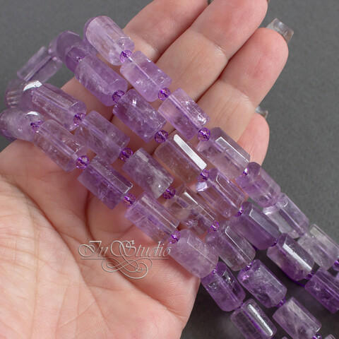 Крупные бусины цилиндры, трубочки из натурального аметиста.