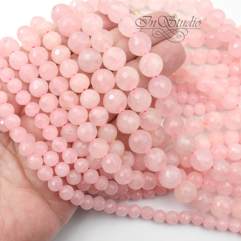 Бусины с огранкой из натурального Природного Мадагаскарского розового кварца нежно розового цвета.