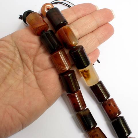 Агат 20х14 мм коричневый рыжие бусины трубочки бочонки