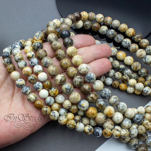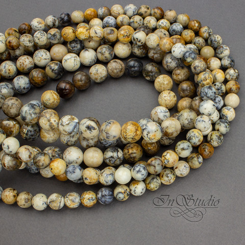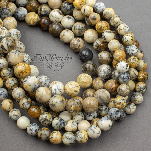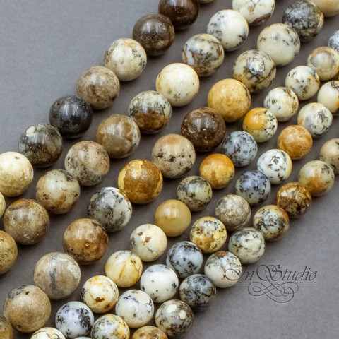 Бусины из натурального МОХОВОГО АГАТА светло коричневого цвета различных оттенков бежевого, белого, желтого, черного и коричневого цвета.