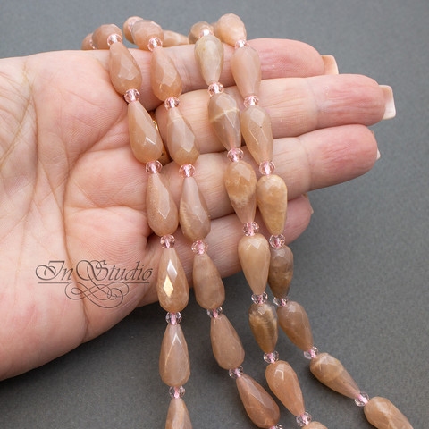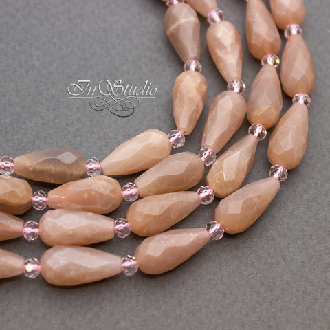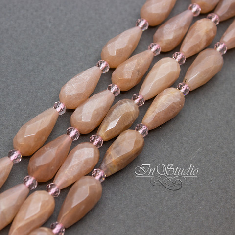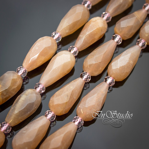 Бусины капли с огранкой бежевого теплого цвета с характерным золотистым мерцанием и карамельно-розовым оттенком. Не яркие - цвет спокойный приглушенный.