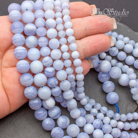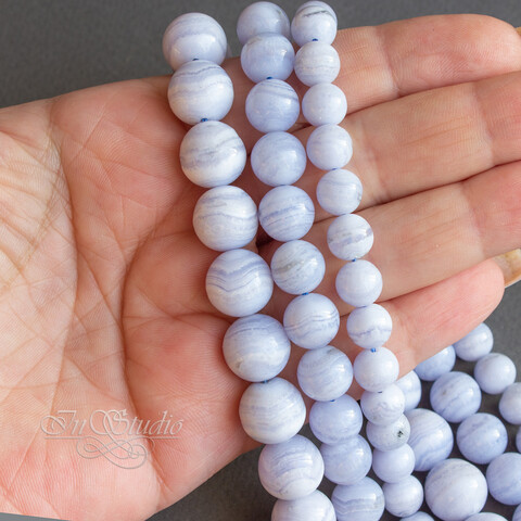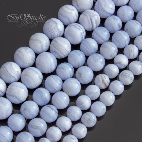 Каждая бусина сапфирина с полосочками - хорошо заметны волнистые линии, некоторые из которых напоминают облака или кружево. Нежный переход оттенков создаёт красивый визуальный эффект многослойного рисунка.