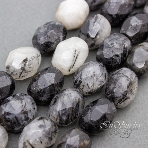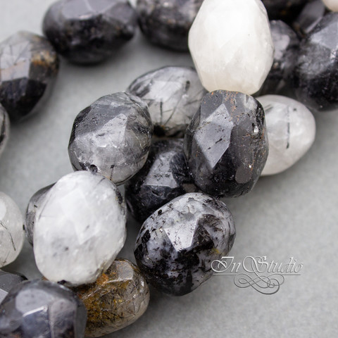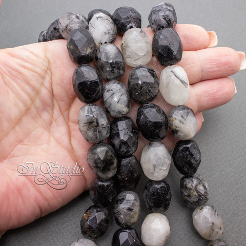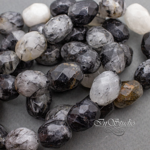 Турмалиновый кварц 16-20 мм бусины фри форм с огранкой