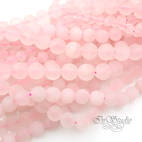 Бусины матовые из натурального розового кварца нежного светло розового цвета.