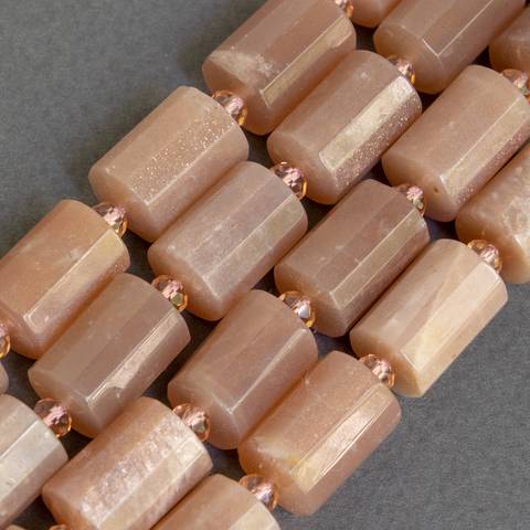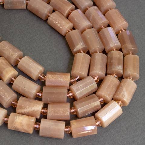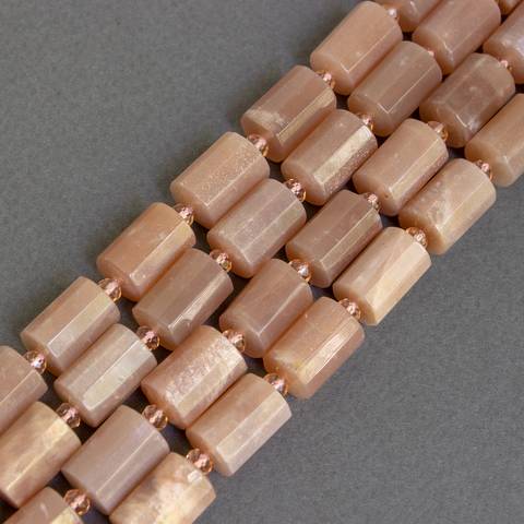 Крупные бусины цилиндры трубочки с огранкой бежевого теплого цвета с характерным золотистым мерцанием и карамельно - розовым оттенком.
