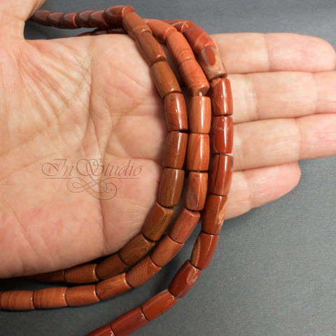 Бусины трубочки цилиндры из натуральной красной яшмы.