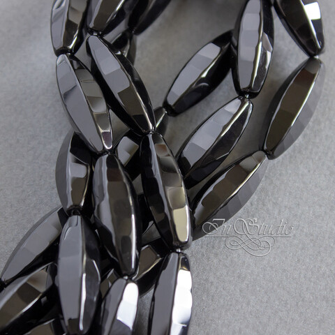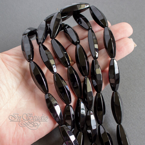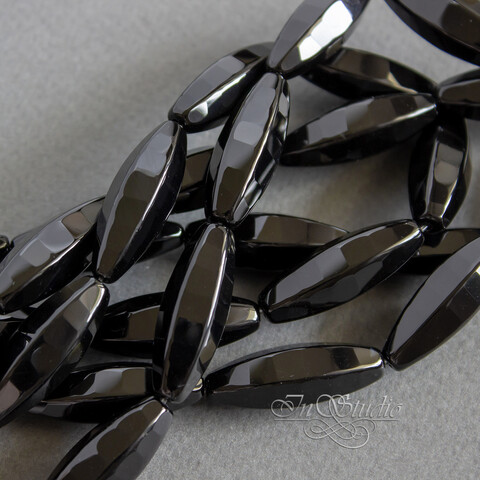 Агат черный 30х10 мм бусины веретено огранка