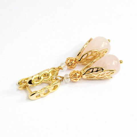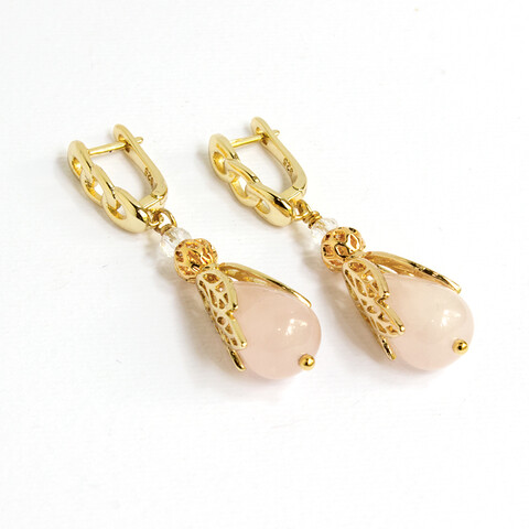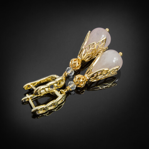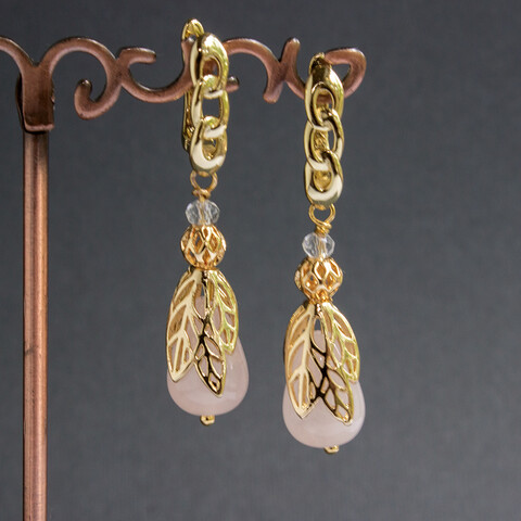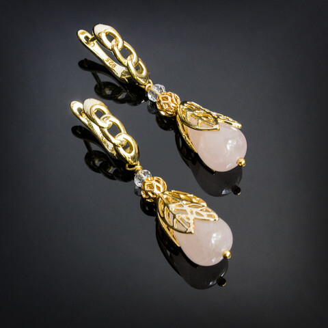 Серьги Амели из натурального розового кварца светлого, очень нежного оттенка и позолоченной фурнитуры.
