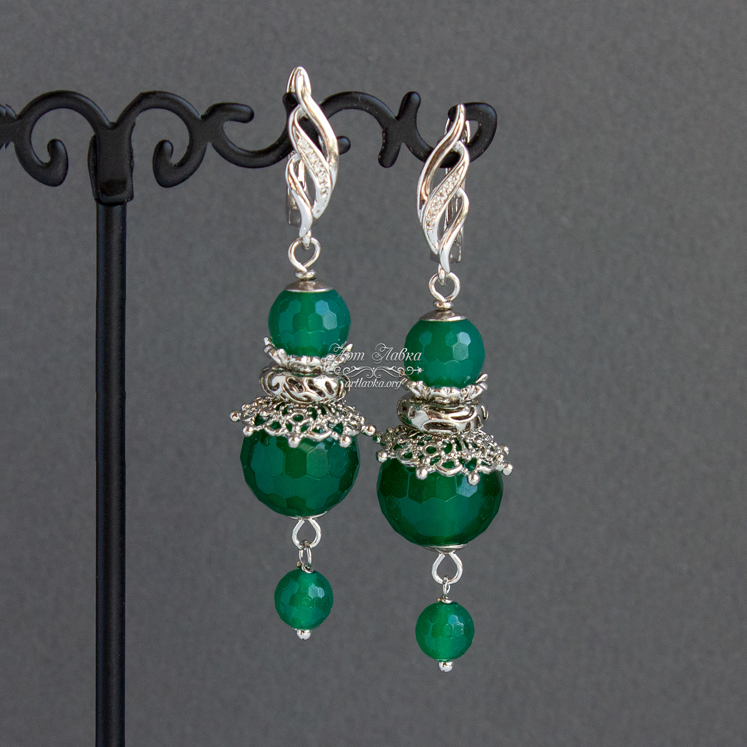 Серьги Парадайз из натурального хризопраза с огранкой насыщенного зеленого цвета.
