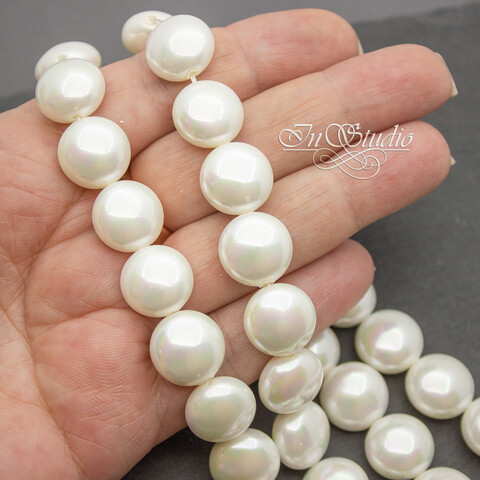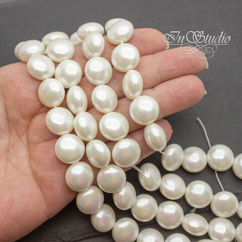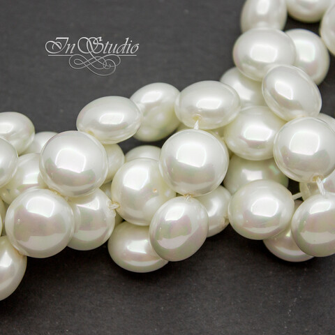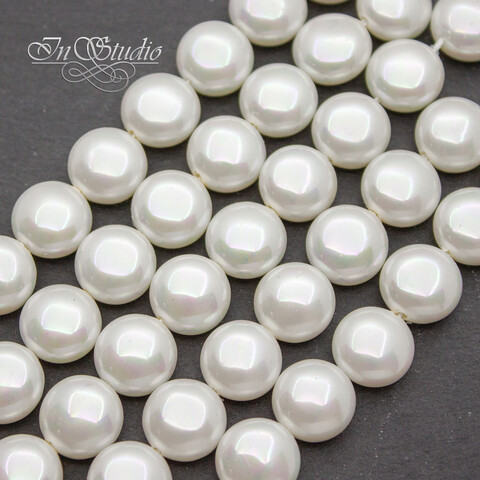 Жемчуг Майорка крупные круглые плоские бусины - бусины формы таблетка со сквозным сверлением. Цвет белый с радужным переливом.