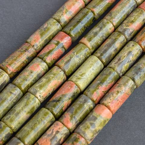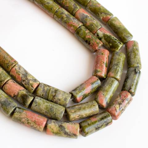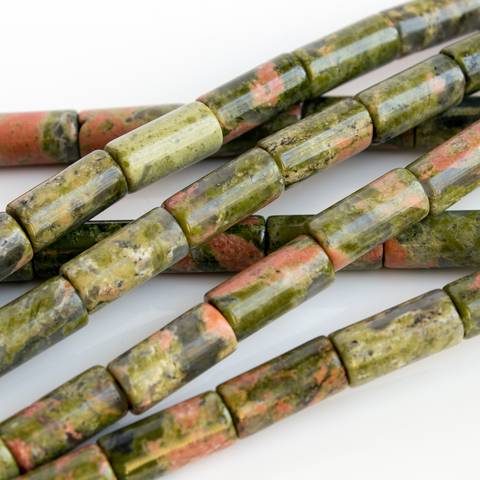 Длинные бусины из унакита цилиндр, трубочка - полированные бусины для создания украшений из натурального природного камня унакит.